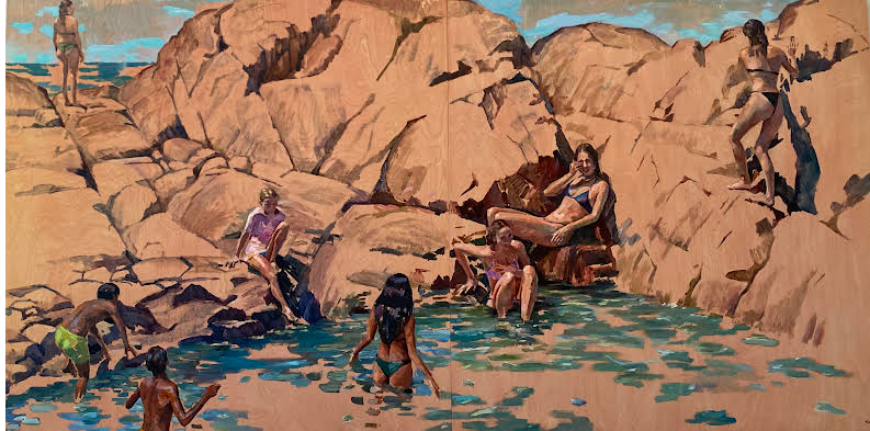 This original oil painting on wood captures the vibrant scene of Bathers on Narungga Land, set against the coastal rocks near the water at Dhilba Guuranda–Innes National Park. The artwork skillfully portrays figures engaging with the ocean, reflecting both the natural beauty and cultural significance of this unique landscape. Its detailed composition and rich textures offer an authentic representation of the coastal environment, making it a distinguished piece for collectors and admirers of Australian art.